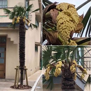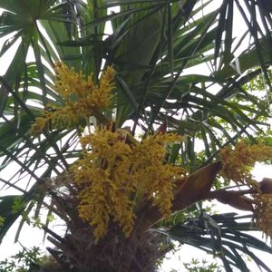 【花なのか教えてください。】 棕梠(しゅろ)の木です。 クリーム色のもこもこしたものは花なのでしょうか? 教えてください。