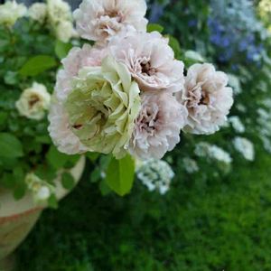 6/1に香りのバラまつりでお迎えした、ピュルカプリスさん。 まだ咲いています。一番花です。まだつぼみもあります。 左上が咲き始め。右回りに完全なグリーンまで退色します💚 見た目もだけど、バラだということを忘れるぐらい、ずーーーっと咲いてる😅 こんなに咲かせておいて大丈夫かなぁ?💦