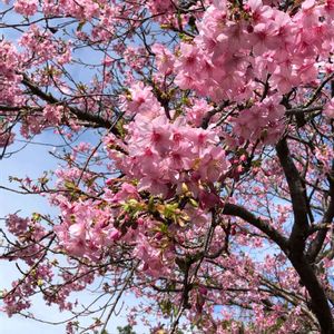 今日はいい天気でした☀️ 一足早く、近所の公園に桜を見に行って 来ました➰ イズノオドリコ(桜) オオシマザクラとカンヒザクラの自然交配種だそうです✏️ 伊豆で発見された桜みたいで、 だから名前が伊豆の踊子なのかな😁 ソメイヨシノと比べて葉っぱが多い🌿