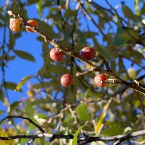 おやおや、今時こんなところにナシの実が❣️ いえいえ、これはナシよりかなり小さい「マメナシ」の実ですよぉ〜🥹 残念ながら、これはナシの原種ではないので食べれません!😅 愛知県や三重県にしかない絶滅危惧種で、国内自生林はわずか350本ほどの珍しい植物さんなのです。🥹