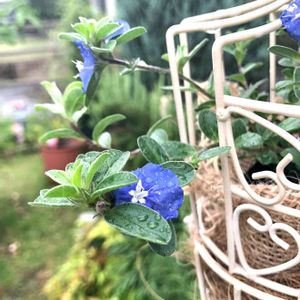 こんばんは。 アメリカンブルー エボルブルス 多年草らしい。 ヒルガオ科 非耐寒多年草 部屋で冬越しできるかも? 5月~10月 這性で草丈も15cm 初めて育てます。 日向を、好み 水やりは、成長期は、乾いたらたっぷり与える。 肥料は、春から夏は 月に、2.3回液体肥料を、施す。 ポイントは、 株が、乱れたら、切り戻します。 枝数が、増えてこんもりした株に、なります。 切り戻して、挿し穂で、ハンギングに、挿し芽します。 頑張ってくれた挿し芽ビオラと、入れ替えます。 この親株は、お一人様で、育ててみます。