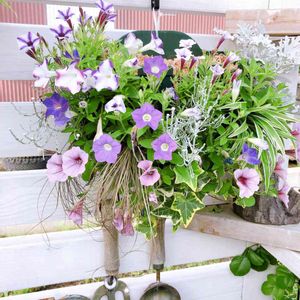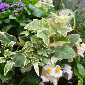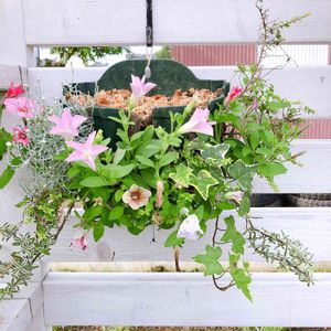 昨日の梅雨の晴れ間に 出番待ちのお花の一部を 夏用ハンギングに… アラアラ🙄 お花が主役じゃなかったの⁇ なかなか思うようには 仕上がらず💦 挿し芽で増えたへデラさんが 主役になってしまいました🤣
