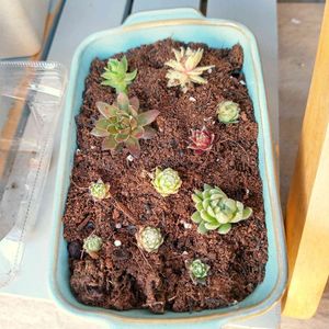 センペルビウム、ギュウギュウになってきたので子株を外して植え替え。 こんなに増やしてどうすれば…