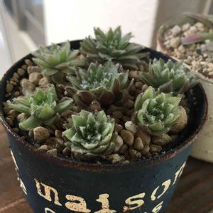 センペルビウム、バニラシフォン☺️ 来たときより、だいぶ緑色になりました♪ 今日はセンペルたちの枯れてたり蒸れてたりしてる下葉をせっせと取り除いてたり眺めたりしてたら、ハッと気がつくと1時間ぐらい経ってた😂 チラホラとランナー伸ばして子どもがいる子発見!😳嬉しい〜💕
