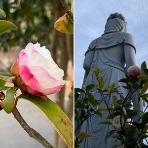 珍しく月火とお休み コロナが落ち着いてたら遠出していたと思いますが…近隣でお散歩します 観音様の背後から失礼して 🏷どたま祭りに初参加させていただきます サザンカは大和富士という種類のようです