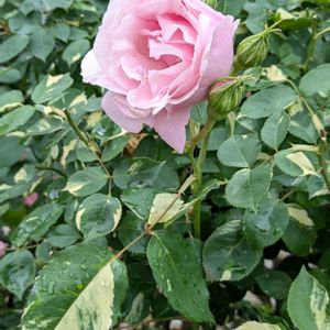 京成バラ園の 斑入り葉のヘルシューレンで 🏷錦の日 参加します🤗🎶 前橋の敷島バラ園では フェルシューレンの名札ですが、 GS内はヘルシューレンが多めみたい😊 今日はライブ🎶のため 関西圏にお邪魔していますよ❣️