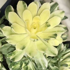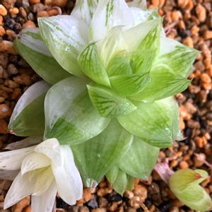 錦の日 皆さん綺麗な斑入り拝見してとても楽しかったので、私も参加させて頂きます! ハオルチア 氷砂糖 玉緑の斑入りだそうです。 GSで見掛けてから斑入りに憧れて、見つけて即買いした物。 冬の間は大きく変化無さそうです。 白が入る物、うっすら淡くなる物、様々な様子を見せてくれる錦ちゃん達 今日は堪能させて頂きます!