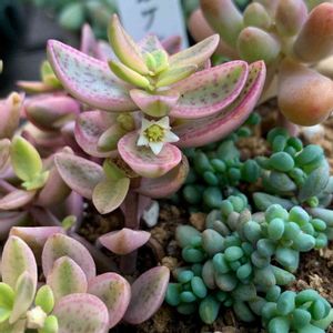 みらいさん 発案の🏷24日は錦の日✨ 可愛いピンクになった斑入りパリダムさんで参加しまーす(*'∇')/゚ 垂れ感もいい感じ〜 セダム大好き❤