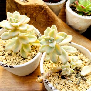 YUKIMIRAClEちゃんのポストを見て 私も錦の日に参加させてもらいます🎶 折れて2つになっちゃった ティテュバンス錦 少しシワが出ちゃってるけど 2つとも元気に育ってくれてます🎶 お子ちゃまも大きくなるといいなぁ〰️。