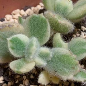 こんばんは(*^^*) 今日は24日、みらいさん発案の「錦の日」第1回目です 。・:(゚^o^゚ノノ゙☆ 斑入り熊さん✨ この鉢はカットして挿し木したコ🐻 親株は残念ながらちょっと徒長気味なのですが(~_~;)