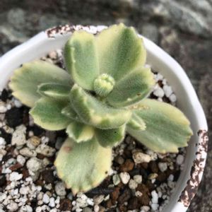 おはようございます🌥 「錦の日」参加させて頂きます🤗 いくつか斑入りの子がいるから悩んだけど、この子にしました🐻 斑入りだしモフモフだしカワイイ子です😍 ただ…葉っぱが少し傷んでいるような💦 焦げた❓虫❓ 念のため、お薬かなぁ😥