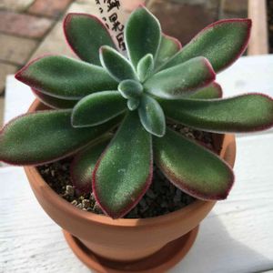 先日、河野自然園さんからお迎えしたコ 《南十字星》 上から見ると四つ葉で葉の縁が薄いピンク色💗に染まるのも可愛いです。 これは星の王子の斑入りですね❣️ 「錦の日」に参加させてください