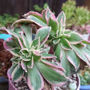 本日24日は、みらいさん開催の🏷錦の日❣️ 私の大好きな、錦でも斑入りでもOKとのことなので、参加します❤(。☌ᴗ☌。) まずは1枚目😁 植物名は、画面をタップしてくださいね😆 エケベリア、サボテンは冬も外置きですが、錦さんと斑入りさんは大好きなので、過保護に室内管理です。 なので今の時期は、☀️不足で斑がボンヤリ😅 ティチュバンス錦と白牡丹錦は同じという説もありますが、我家のを比べると葉先が尖って爪っぽいのが白牡丹錦という説に共感かな😆 というか、本当の?白牡丹錦が欲しくて探していたので、出会えて嬉しかった(笑) 親は同じでも変異種的な。 単に育て方の違いだったりして🤣🤣
