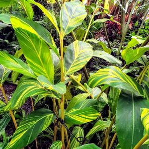 ぐんまフラワーパークの温室で、綺麗な斑入りの植物を見つけました。😊✨ キフゲットウ(黄斑月桃)です。💖 みらいさんの「錦の日」🏷️参加します。😃🎶 頑張れ❗日本‼️ ✊‼️