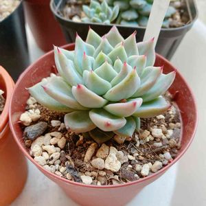 「5日はごっつご機嫌」🏷に参加します🎵 ⬆️エケベリア属 桃太郎🌱 2017年10月にお迎えして6年目に突入してます🎶チワワエンシスとリンゼアナの交雑種。そういえば、この子をお迎えした半年後にもらった2号くんの生長点が、いつの間にかトンズラしてたのは、チワワエンシスのDNAなんでしょうな😂爪がキレイになってきてます🍑 ↙️エケベリア属 紅化粧🌱 この子も2017年10月にお迎え。見切り苗だったのが良い感じに育ってたんですけど、2021年1月の大寒波でやらかして(露天置きの実験)、ダメ元で救出したところからの復活😆この姿で6年目を迎えれたことにご機嫌(〃艸〃) ↘️エケベリア属 ラジョヤ🌱 韓国で交雑されたアガボイデス系の子。明るいグリーンと爪がチャームポイントですな♡この子は昨年の12月にお迎えした子なんで、うちではまだ若いペーペーです🤭6cmポットにカット挿ししてゆとりがあったんで、結構順調に育ってます💕 エケベリアたちが綺麗になってきてるんで、棚を眺めても見飽きんですよね~🤩