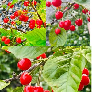 かわいいさくらんぼたち🍒🍒🍒 小さなさくらんぼが赤く赤く色づきまし た🍒小鳥さんがついばみに来てくれる のを楽しみにしています🐦💞🎶