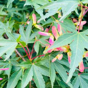 もみじの赤い羽根…☆〜☆*:.。. .。.:*☆ よく見ると中には種が入っています。 プロペラの形に似ているのは、種を 遠くまで飛ばす為ですね。 緑の中の赤いプロペラ、かわいいですね ただ、家の庭にいっぱいもみじが芽を出 し、抜くのに大変です(´-`).。oO