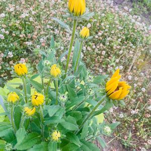 ミニひまわり🌻 開花を待つ蕾もいいなと思います🎶 今日も暑くなりそうです☀️ 良い休日をお過ごしください🌿