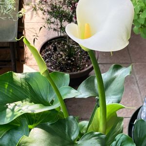 おはよーございます♪🤗🎶 玄関前のカラーが開きましたぁ🌼 そして、また一つ蕾が上がっています🌼