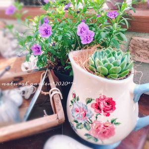 先ほど投稿したpicに説明をいれようとして、早まって何も説明せず投稿してしまった😣 庭で丸いプランターに2苗入れて育ててるバタフライピー(蝶豆)。流行りなのか喫茶店とかカフェで見かけるようになってきたのでいざ栽培へ。 たまたま近所の園芸店で発見して購入してみたけれど、2苗では1日に一つだけしか花が咲かないので、3日で3つの花を入れてお湯を注いで飲んでみました。んー、味はない、レモングラスとかタイムとかミントあったから入れればよかった😞💦 でも、レモン🍋(ポッカレモン)入れたらブルーから紫へ変化しました。(これがやってみたかった😊)