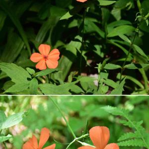 艶やかなオレンジのパッと目につく👀花、 フシグロセンノウです😍 意外に薄暗い林の中とかにも咲いているので、周りがパッと明るくなる感じ😆