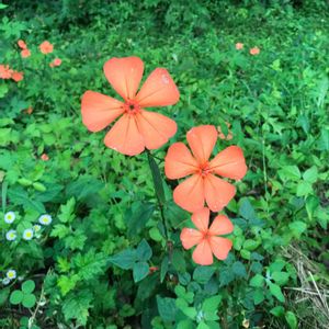 今日のフシグロセンノウ。 裏庭にて。 ドクダミの茂みから鮮やかなオレンジが現れました。