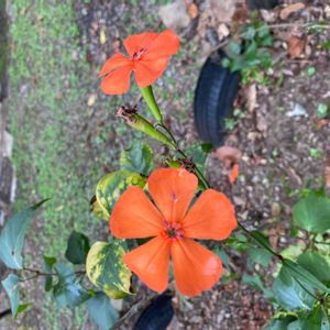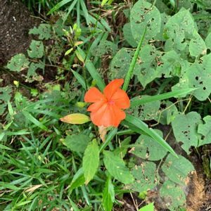 細長ーい茎に鮮やかなオレンジの5篇の花びらです。何という花でしょう?