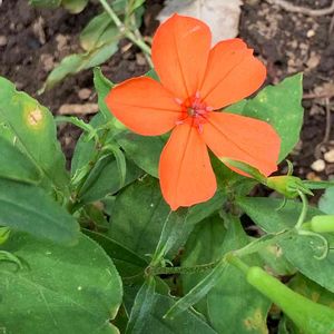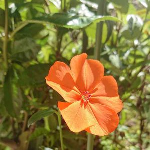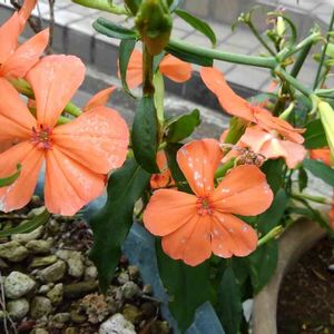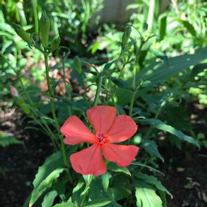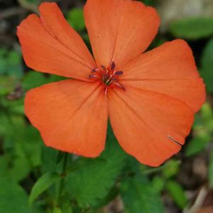 おはようございます。今朝起きたらフシグロセンノウが咲いてました。 フウロソウに似た花弁で華やかなオレンジ色が日陰で輝いてました。