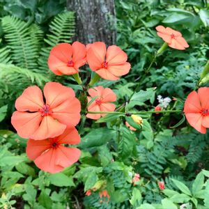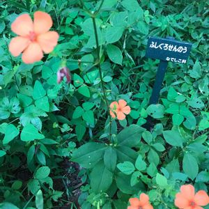 わんちゃんのお散歩中に 草むらにぽつんと鮮やかな色のお花に 目を奪われました、 インパチェンスでしょうか⁈