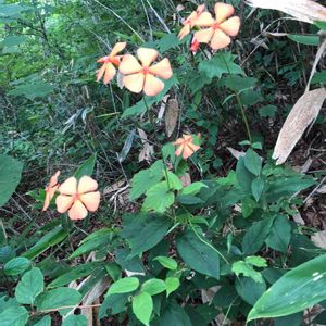 山の中の道端の深い藪にこんなに目立って咲いてました。 手を伸ばしてやっと撮ったので葉っぱは不明です。ごめんなさい🙇♀️ 🍀フシグロセンノウと教えていただきました✨