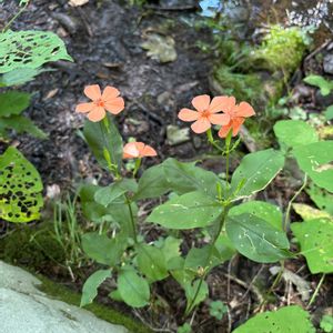 フシグロセンノウ(節黒仙翁) *ナデシコ科センノウ属 花期は7〜10月 本州〜九州の山地の林内で見られる多年草! 茎の節はやや膨らみ黒褐色(名前の由来) 葉は対生し長楕円状披針形! 花は朱色の5花弁! ③雄性先熟では雌性期に入った状態で10個の雄蕊が花粉を出し終えると、5個の雌蕊が伸びてきます❗️ 8月9日撮影