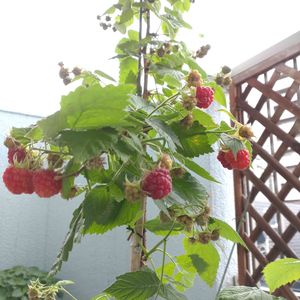 写真的にはあまり綺麗とは言えませんが、甘酸っぱいお味のラズベリーです❣️ 前にもベリー系を1本持っていたのですが、知識無しでちゃんと育ちませんでした😓 だから、今回はきちんと育てています。あちこちに実が付いて色付いてきてます💕 うちは9階、鳥🐦に横取りされない前に味わいたいです😊