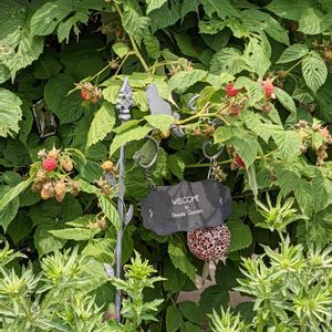 まるで侵略的植物の宝石箱やぁ〜💎 前出の「ウルトララズベリー超大王」の実が赤らみました。 もう一度書いておきますが、これ、世間一般で認識されているラズベリーじゃないです。 島根県の方?にある「クマイチゴ」っていう木苺の選抜種らしいです。 爽やかな酸味、ありません! 高貴感漂う芳香、ありません! 子供の頃野山で食べた木苺、野いちご、そのものです。 (だって元が島根?の木苺ですもん😅) シュートで増えます。 物凄く増えます。 物物物物凄〜く、増!え!ま!す!😱 侵略的植物、ミントや琉球アサガオの類です。 地植えはモグラ叩き状態になります😁💦 ↑と、諸々の理由でお薦め出来ませんが、食べると子供の頃の記憶が甦るので、有りっちゃ〜有り…かな?😌 気になる方は、鉢植えでどうぞ😉👍🏻 花言葉は 『植物界のプーチ…🤐』
