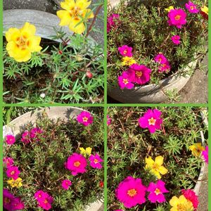 おはようございます😃 私の庭にて🤗 ①マツバボタン ②ニチニチソウ ③サンジヤクバーベナ、テンニンギク、ナミアゲハ🦋 ①〜③コラージュしました😄 ④サンジソウ(ハゼラン) ⑤愛染錦 🏷️ビューティフルサンデー 🏷️2のつく日は斑入りの日 🏷️斑入り見つけ隊♪No.23 🏷️24日は錦の日 🏷️癒しのピンク🩷初参加します。 🏷️心にメローイエロー 参加します。