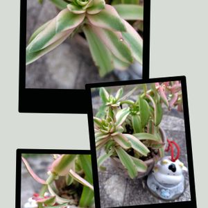 コンバンミ〜🙏🥰😍🤩😉 夜分に失礼致しマス~🙏🙏 水無月(24日)火曜日(☁☂️) 今日は我が家の多肉ちゃんの斑入りを〜📮致しマス~ お高い皆様の様なステキな多肉はございませんが… 私は一般庶民なので~細々と〜多肉を愛して病みませんが〜懐具合と相談して~なるべく〜高額には成らない様には気を付けてマス~(笑)(笑)~ ①…📮する多肉植物だよ〜 全員集合〜 ②…多肉の斑入り寄せ植え ❀雅楽の舞 スベリヒユ科 ポ〜チュラカリア属 流通名 「雅楽の舞」 原産地 アフリカ 別名 「雅楽の舞錦」 「エレファントブッシュ」 原種は「銀杏木」と呼ばれる (ギンナンボク) ❀覆輪万年草 (姫笹) ベンケイソウ科 セダム属 原産地 不明 冬に休眠する 別名 「セダム姫笹」 「リネアレバリエガ〜タ」 「リネアバリエガ〜タ」 オノマンネングサの斑入り種 ❀南十字星 ベンケイソウ科 クラッスラ属 別名「パ〜フォレ〜タバリ エガタ」 星の王子の斑入りタイプ 原産地 アフリカ 花期 春 成長点から伸びて花が咲く ❀サルメント〜サ ベンケイソウ科 クラッスラ属 流通名「サルメント〜サ」 原産地 アフリカ 花期 春 (成長点から伸び花が咲く) ちっちゃいけど〜わかりませんかネ~何故だか~大きく成りましぇ~ん'😫😵😰 ③…セダム (コ〜カサス キリンソウトリカラ〜) ベンケイソウ科 セダム属 原産地 コ~カサス地方 耐寒性多年草 多肉植物 トリカラ〜 やや立性タイプのセダム 斑入りの葉色は寒さに当たると美しく赤みが増していく 暑さ寒さに強く横に広がる ④…覆輪万年草 ベンケイソウ科 セダム属 ❀覆輪万年草 (フクリンマンネングサ) (フクリンマンネンソウ) ➕️ ❀丸葉覆輪万年草 (マルバフクリンマンネング サ) (マルバフクリンマンネンソ ウ) ➕️ ❀南十字星 (星の王子の斑 入り) ⑤〜桜吹雪(サクラフブキ) スベリヒユ科 アナカンプセロス属 耐寒性多年草 園芸品種 花期 5〜7月 桜吹雪は吹雪の松の斑入り品種で斑の入りがピンク色に染まることから桜吹雪の園芸名がついたといわれている 冬 休眠期 桜吹雪のお花💐が咲いてしまった〜アチャ〜花柄らしき残骸が〜垂れ下がってた〜まだ蕾有るけど~⁇⁇ 昨年は咲いてたけど~さほど〜咲いた〜って言う様なお花💐で無かったから〜💐📱パシャリしなかったけど~⁇⁇ お花💐中々見れ無いって言うのはこう言う事かな~⁇⁇ 月下美人の様に夜に咲くって事無いデスよネ~⁇⁇ 蕾が長いまま〜枯れる事も有る🦆デスよネ~⁇⁇ 今日も〜宜しゅうに〜🙏 オヤスミ💤💤💤なさいネ~👍✌️👌👋👋👋