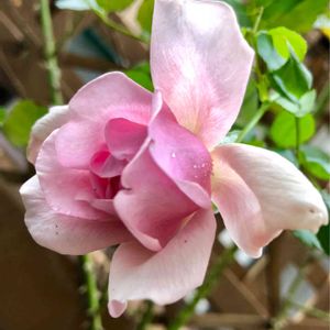 おはようございまさす🤗 朝から雨です☔️ 我が家のバラ第1号の ラドルチェヴィータ開花しました🌼 雨雫が宝石みたい💎 とっても綺麗デス(*´∀`*)
