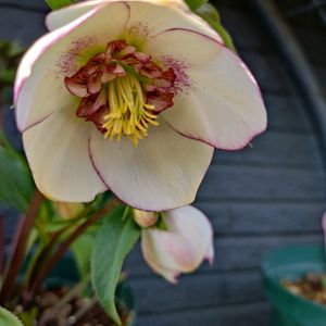 クリスマスローズ ホワイトシュガーシフォン 寄せ植えにした子が初めての開花です🍀