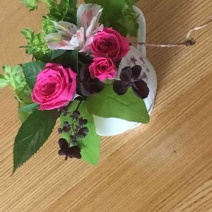 おはようございます お庭の薔薇とカスミソウでアレンジ💕、、のはずが、あら~バラバラよ~💦 もうそのまま、、💦 夏はなるべく咲かせず、体力消耗しないように、つぼみで摘んでいますが、なんとか咲こうとするバラ達です。暑いからいいのよ~😓と声かけしています。 今日も暑そうだけど✨がんばりましょうね💕