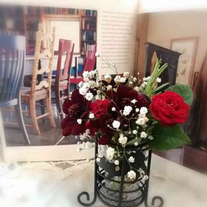 ミニアレンジ ★茎が折れてしまった花を集めて作るミニアレンジ🌹 レジの横でお客様をお出迎え😆
