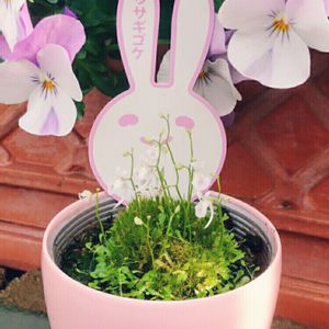 花がウサギの形で、かわいいとおっしゃる方が多いウサギゴケですが、寄ると顔は怖い。 この微笑む札にだまされてはいけない!! 絶叫ウサギと命名しました😱 しかし、この感覚はうちの女性陣には分からないみたい……。