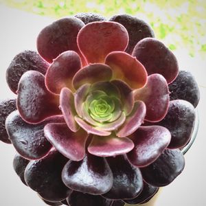 週末はいっぱい日光浴した黒法師錦♥️デス☺️ 平日は室内から日光を浴びてるので色が薄くなったりするのですが、しっかり日光を浴びたら、すぐに美しい姿になってくれるアエオニウムさん❤︎.* 班の黒も濃くなって、とっても綺麗✨ アエオニウムさん❤︎.*育ててほんと楽しいョ😆🙌🏻