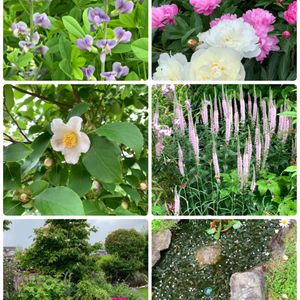 ☔️こんばんは☔️ 今日は☔️の中、お友達とオープンガーデンに行って来ました😊 5軒回りましたが厳選しました😊 ムラサキセンダイハギ・芍薬・夏椿(夜明け前)ベロニカ・スピカタ・寄せ植え花壇・庭の中の小川の梅花藻です。 どのお庭も草も無く良く手入れされていました😳 自分ちの庭もちょっと頑張らなくちゃと言う気持ちになりましたが、どうなりますやら😅