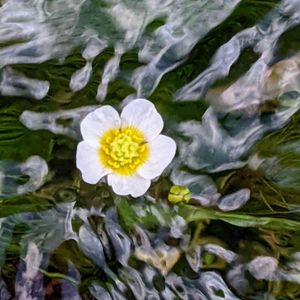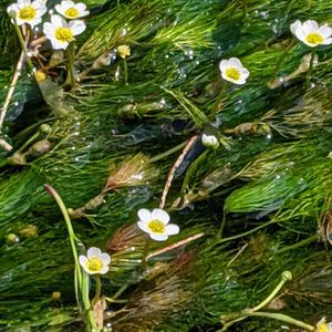 水中花 梅花藻に会いたくて富士山🗻の湧水が湧き出る浅間神社本宮境内湧く玉池から流れ出る神田川に行きました🌿 梅の花に似た可愛い花は終わっていました🌿 梅花藻花言葉 幸せになります