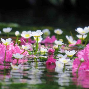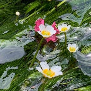 皆さんのpicを見て醒ヶ井の梅花藻を見に行きました。 あいにく水量が多く、水中に揺れていましたが 店先に置いてあった花を撮ってきました。でも大満足! コラージュしてその素晴らしさをお伝えしたかったのですが デジカメでとってうまくUPできませんでした。そこが残念。