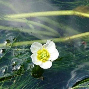 梅花藻(バイカモ) 醒ヶ井(滋賀県)へ行ってきましたが増水の為川底に揺れる姿は見れませんでした。 写真は地元の方が育てている梅花藻を撮らせて頂きました( ꈍᴗꈍ)感謝( ꈍᴗꈍ) 梅花藻はキンポウゲ科の淡水植物で水温14℃前後の清流でしか育たない為生育場所が限られているとの事。 可憐な花にうっとり、涼を戴いて来ました。