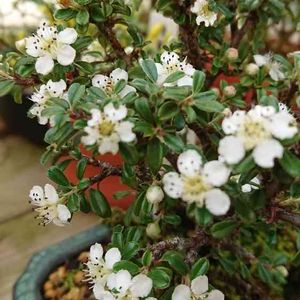 (白花が続いてますが…) こんなに小さい鉢でもキッチリ咲いてくれるなんて、優秀な樹種だなぁ→秋には実も楽しめそう😊