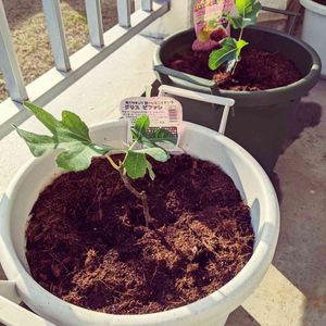 新入り加入! イチジクのグリスビファレ。 二株セットで2,400円。 安い。 一年苗なので、収穫は2〜3年後から、とのこと。 日中はベランダ、夜は室内で、まずは越冬頑張ります。