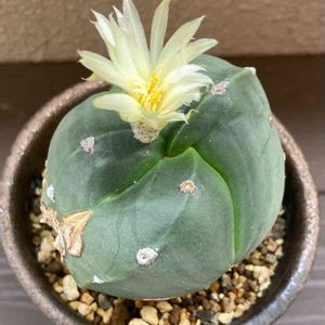 2稜ランポーの花🌼 初めて咲いたところ見ました😳 花の形も少し歪です・・・ああ不器用っ! ヒビ割れしまくりながら、3稜化が少しずつ進んでいます。 できれば2稜のまま大きくなって欲しかったけど、構造上無理なんでしょうね。