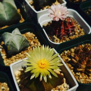 ↖やっと咲き始めた『トルカ』 100均出身チビチビトルカの初花 ↗『桃太郎』に子株 春に株分けして植え替えた桃太郎の根元にチビチビ初子株 ↙『碧瑠璃鸞鳳玉』 先日100均の300円で購入の子株が付いてた方 子株が付いてるので植え替えもこんな感じで🤔 子株埋めてしまってはダメ٩( ・o・˘)カナ… ↘『狸の子』 植え替えたいんだけど… 溢れ種から芽が出て…茶色いけど大きくなってる…けど、まだ小さくて潰しそうブチュッ( ˘ ³˘)