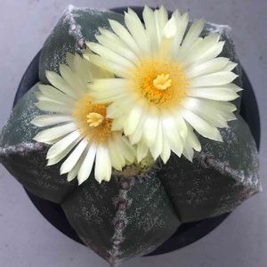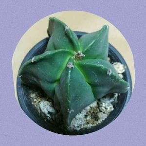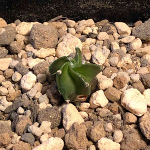 こちらもやはり名札がないので名前が分かりません。 とてもグリーンが綺麗で 5箇所に凹凸が入っています。所々に白いモコモコが出ています。この子の名前がわかる方教えてください 宜しくお願い致します。 「碧瑠璃鸞鳳玉」 (ヘキルリランポーギョク) 回答を有り難うございます。サボテン アストロフィツム属 「ランポー玉」とも有りました。